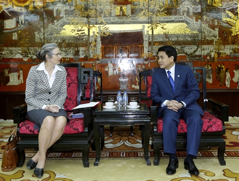 | Le président du Comité populaire de Hanoi, Nguyên Duc Chung, et Madame l’ambassadeur des Pays-Bas au Vietnam, Nienke Trooster, le 24 mars à Hanoi. |