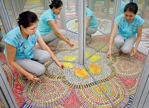 Il y a trois mois, les travaux ont commencé. Cette femme artiste a décoré le palais sous le thème de l’océan. Plus concrètement, les murs et planchers sont dallés de céramiques, créant un monde sous-marin multicolore et vivant. Au sein du labyrinthe, elle a installé 50 nouveaux miroirs sur le plancher doté de belles images océaniques fantasmagoriques, toujours en céramique. Au total, plus de 2 millions de morceaux (2cm x 2cm) ont été utilisés.