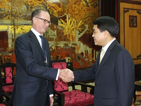 | Le président du comité pupulaire de Hanoï Nguyên Duc Chung (droite) et l'ambassadeur d'Autriche Thomas Loidl. |