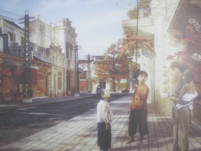 L'exposition présente des photographies en 3D reconstituant l'espace des anciennes rues de Hanoi à partir de la fin du XIe siècle jusqu'au milieu du XXe siècle, avec des paysages naturels familiers mais très particuliers de la capitale tels que le pont Long Biên (ancien pont Paul Doumer), la pagode au pilier unique, le pont Thê Huc (pont du Soleil Levant), le marché de Dông Xuân, plusieurs rues de corporations telles que celle de Hàng Bac (Rue de l'argent), Hang Non (Rue du chapeau)...