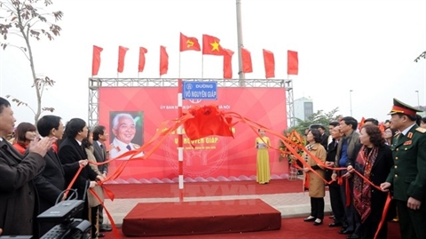 | Cérémonie d'accrochage de la plaque de rue portant le nom du feu Général Vo Nguyên Giap, le 7 février à Hanoi |