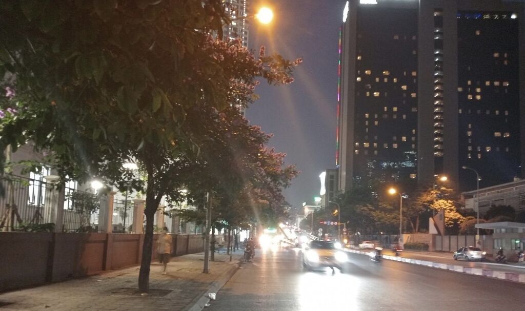 | La route Vo Chi Công, à Hanoï, réduit au maximum les lumières du système d'éclairage public et des panneaux de publicité. |