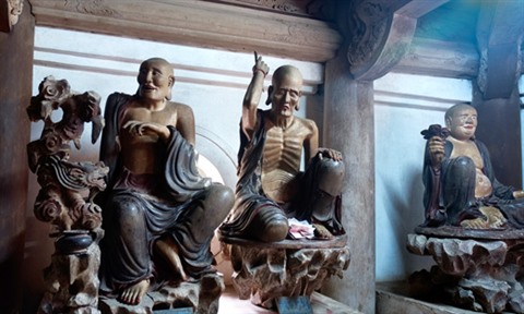 | Des statues de la pagode Tây Phuong, en banlieue de Hanoï. |