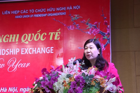 | Nguyên Lan Huong, présidente de la HAUFO, prend la parole dans le cadre du programme «Voyage printanier de l’amitié 2017», le 18 mars à Hanoï. |