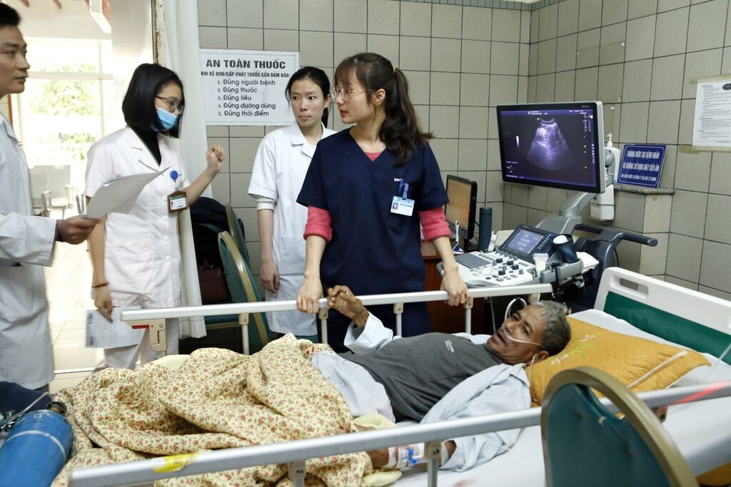 | Un patient est examiné à l’hôpital Bach Mai à Hanoï. |