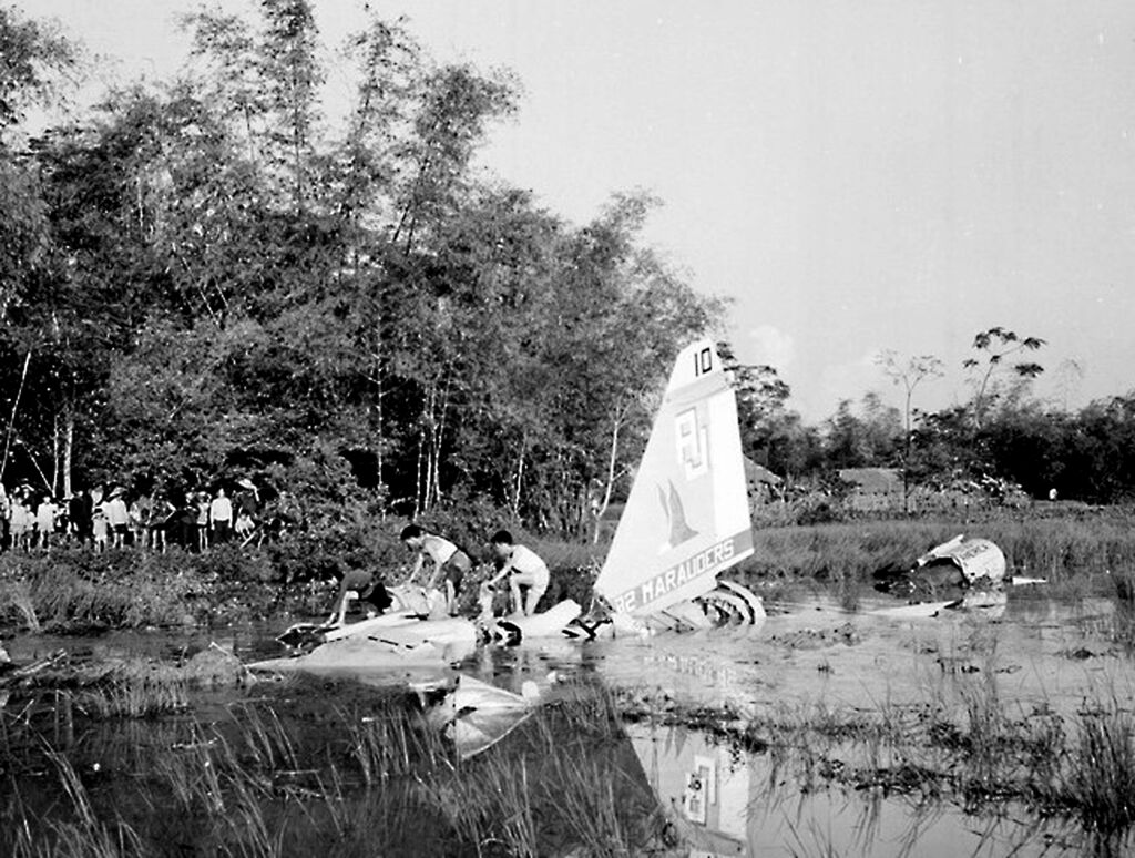 | Épave d’un B-52 abattu le 21 décembre 1972 à Hanoï. |