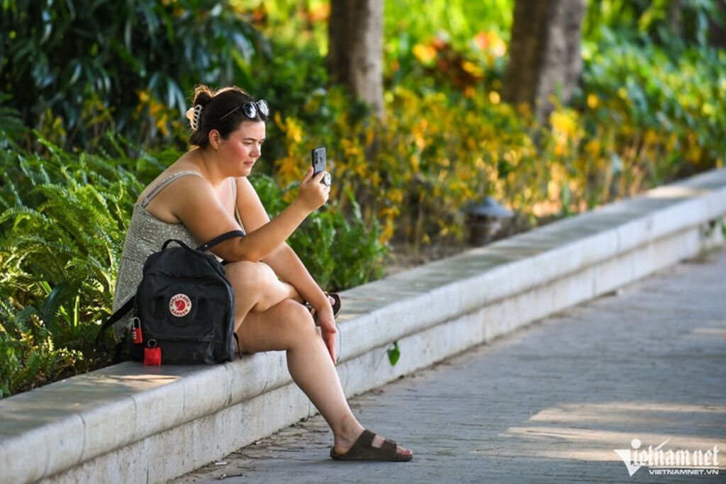 | Assise dans un coin au bord du lac, Jade (du Royaume-Uni) a appelé sa famille pour lui dire qu'elle avait de la chance de venir à Hanoï à la plus belle période de l'année. |