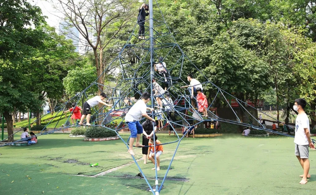 | Des enfants dans le parc Câu Giây à Hanoï. |