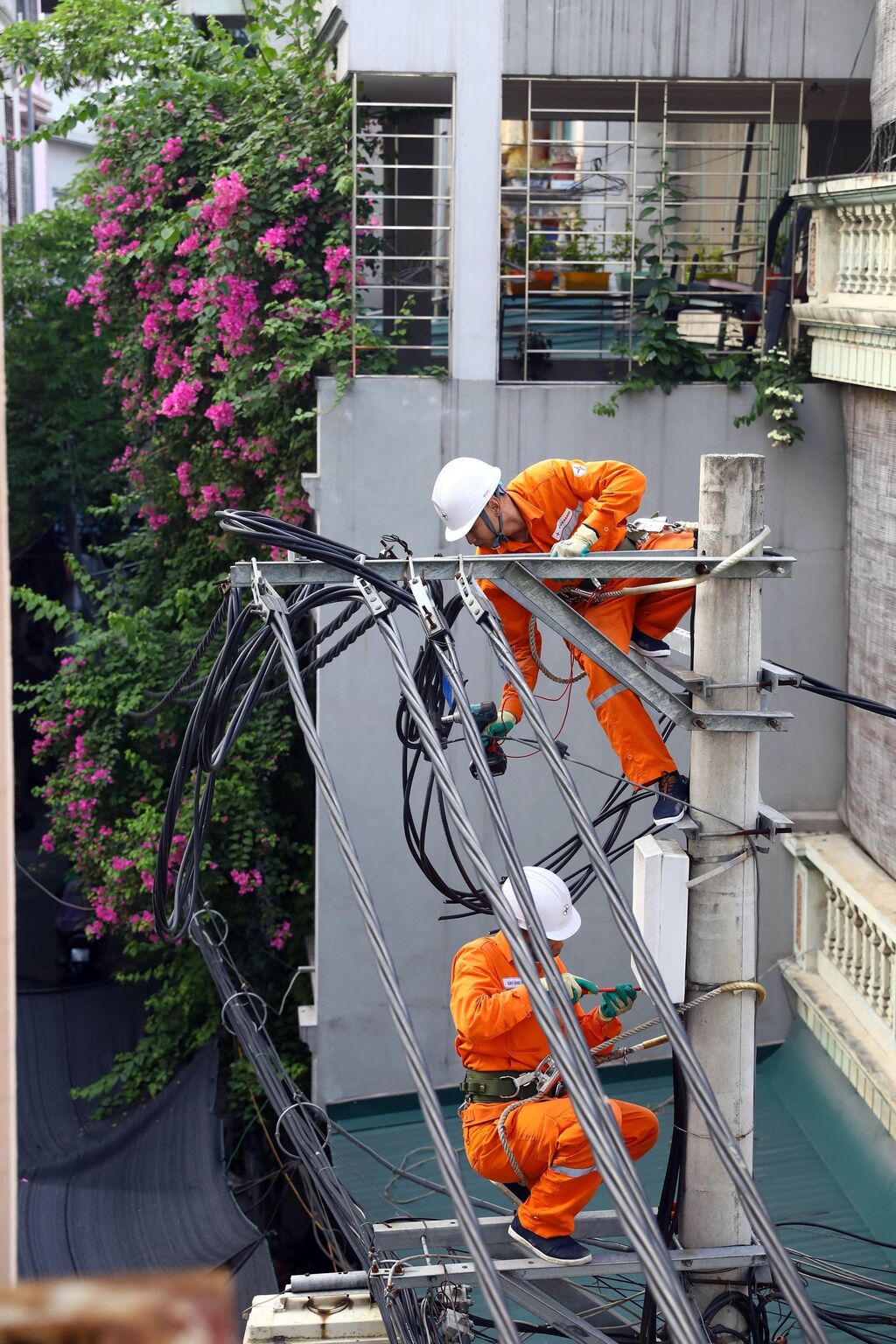 | Entretien de lignes électriques dans l'arrondissement de Hoàng Mai, à Hanoï. Photo : VNA/CVN |