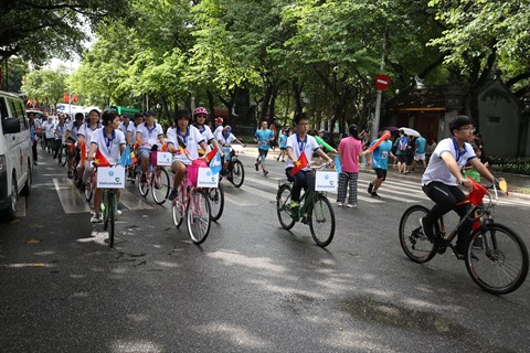 | Les participants à la course cycliste "Pour une Hanoï plus verte", le 4 octobre dans la capitale. |