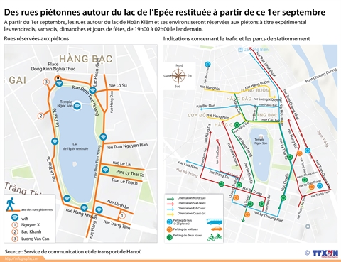 | Depuis le 1er septembre, les rues autour du lac de Hoàn Kiêm et ses environs sont réservées aux piétons les vendredis, samedis, dimanches et jours de fêtes, de 19h à 24h à titre expérimental. |