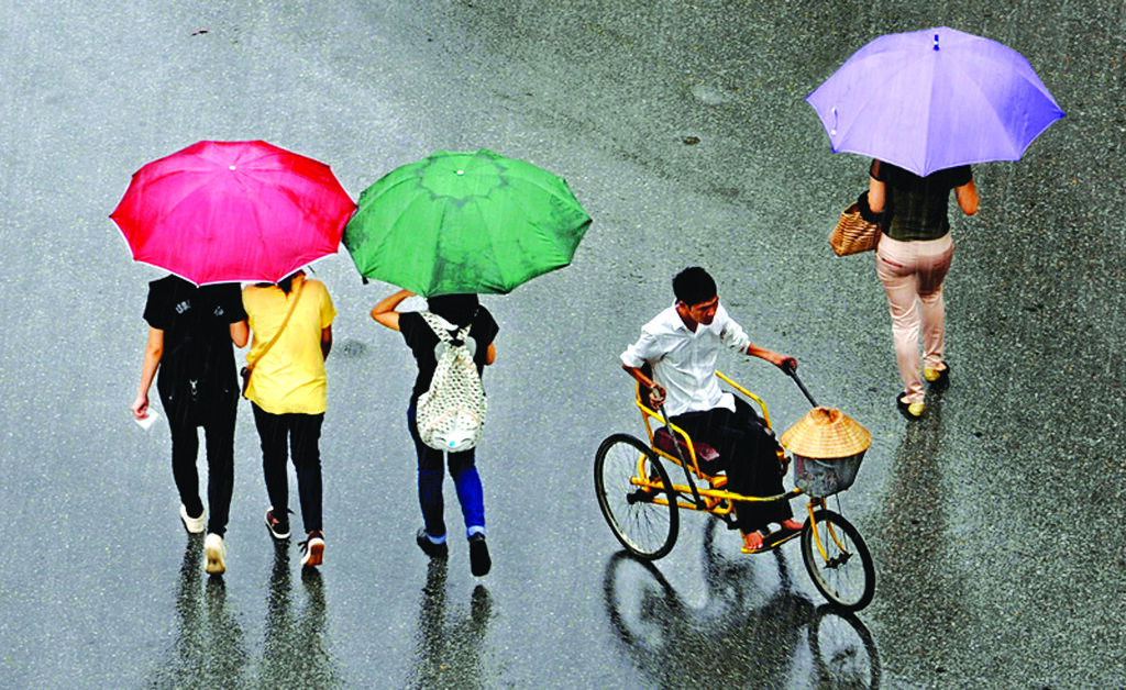 Dans sa maison, l’artiste septuagénaire est ivre de bonheur en présentant ses œuvres préférées. Parmi elles, la photo Dòng đời (Courant de la vie) qu’il a prise du haut de l’immeuble City View au 7, rue Ðinh Tiên Hoàng, au centre-ville. Un jeune handicapé modestement vêtu, sans chapeau, pousse une charrette sous la pluie battante, et en sens inverse quatre passants bien habillés avec des parapluies colorés. “Dans notre vie, il y a encore trop de gens vulnérables qui ont besoin de protection et d’aide”.
