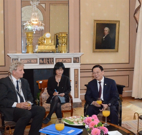 | Le président du Comité populaire municipal de Hanoi, Nguyên Thê Thao (droite), s'entretient avec le maire d’Amsterdam, Eberhard Van der Laan, le 11 septembre à Amsterdam. |