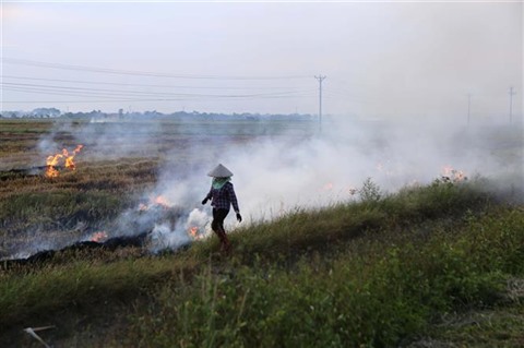 | Hanoï demande aux districts suburbains de bien contrôler la combustion de la paille par les riziculteurs. |