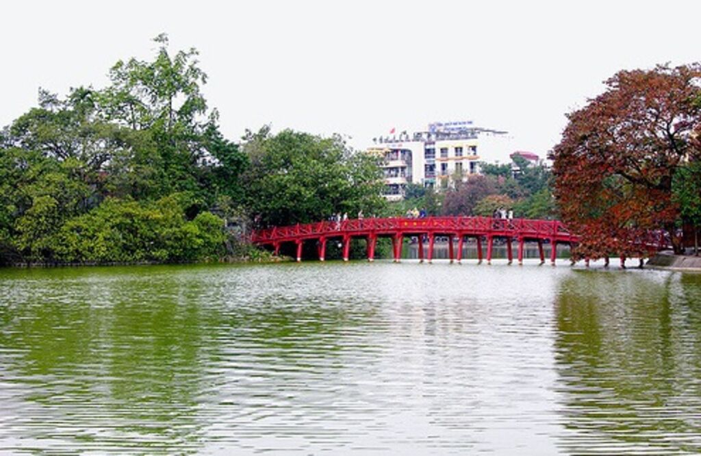 | Le lac Hoàn Kiêm (lac de l'Épée restituée) à Hanoï. |