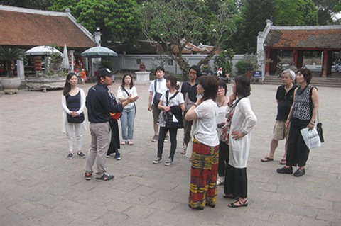 | Des touristes japonais au Temple de la Littérature à Hanoï. |