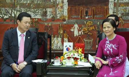 Ngô Thi Doan Thanh a reçu le 18 septembre à Hanoi une délégation du Conseil populaire municipal de Séoul conduite par son président Kim Myung Soo, en visite de travail à Hanoi, alors que les deux pays célébrent le 20e anniversaire de l'établissement de leurs relations diplomatiques (22 décembre).