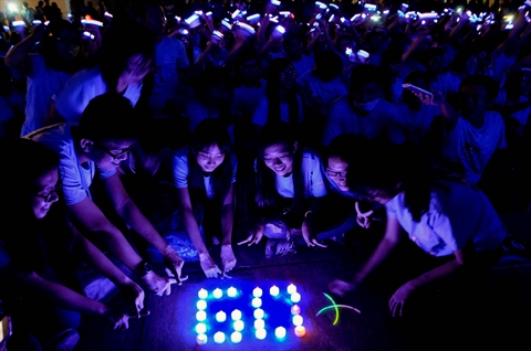 | Bon nombre de jeunes à Hô Chi Minh-Ville se réunissent pour la campagne Heure de la Terre. |