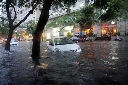 | Avec la poursuite de l’agrandissement de l’agglomération, des précipitations de plus de 50 mm par minute causent toujours des inondations au centre-ville de Hanoi. |