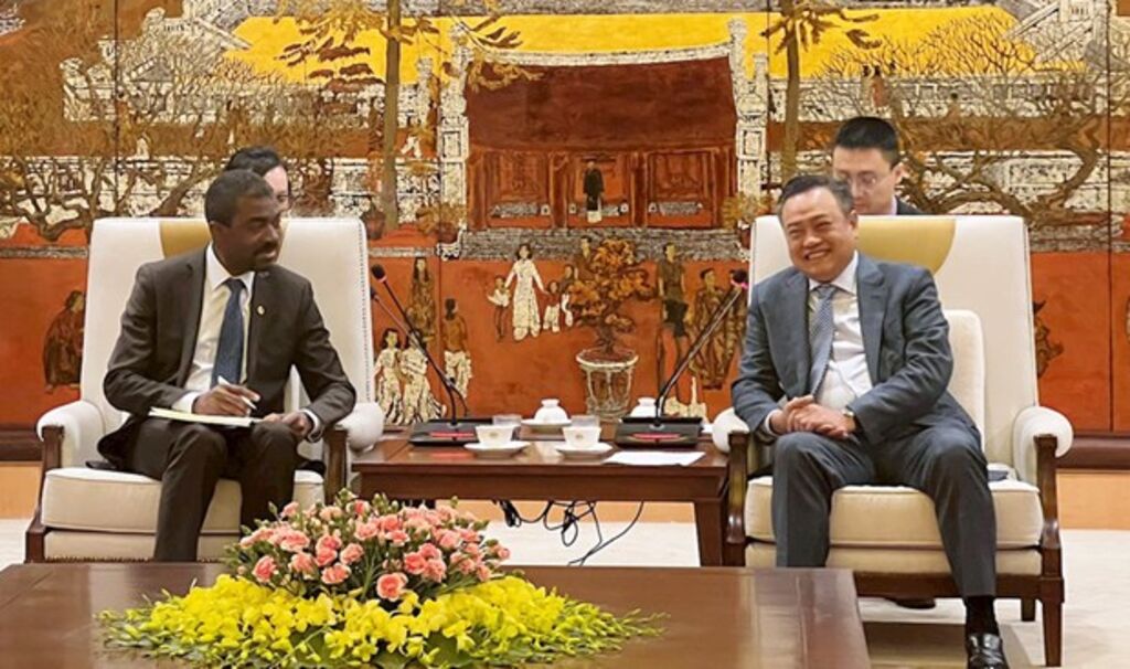 | Le président du Comité populaire de Hanoï, Trân Sy Thanh (droite), et le directeur du Centre du patrimoine mondial de l'UNESCO, Lazare Eloundou Assomo. |