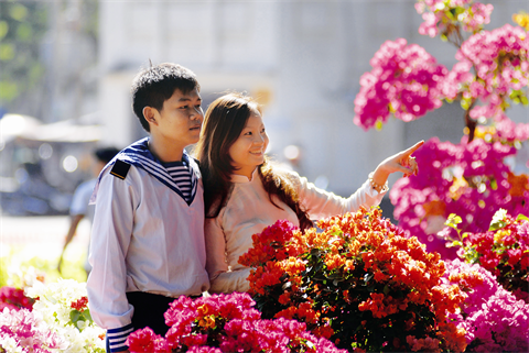| Le marché aux fleurs est une destination favorite des habitants à l’approche du Têt traditionnel. |