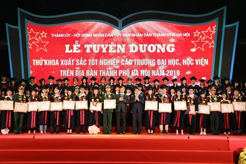 | Les 86 diplômés exceptionnels des universités et instituts de la ville de Hanoï à l'honneur, le 28 octobre. |