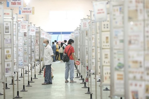 | Visiteurs à l'exposition nationale de timbres de poste Vietstampex. |