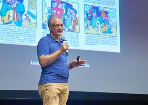 | L’historien de la BD Thierry Groensteen, le 12 juillet à la conférence "L’histoire de la BD d’expression française jusqu’en 2000". |