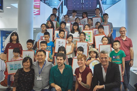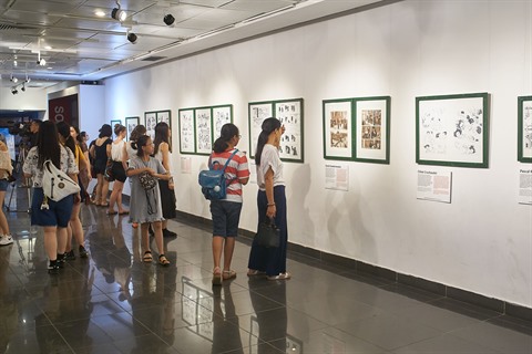 | Visiteurs à l’exposition "La bande dessinée d’expression française aujourd’hui" à L’Espace - Institut français de Hanoï. |