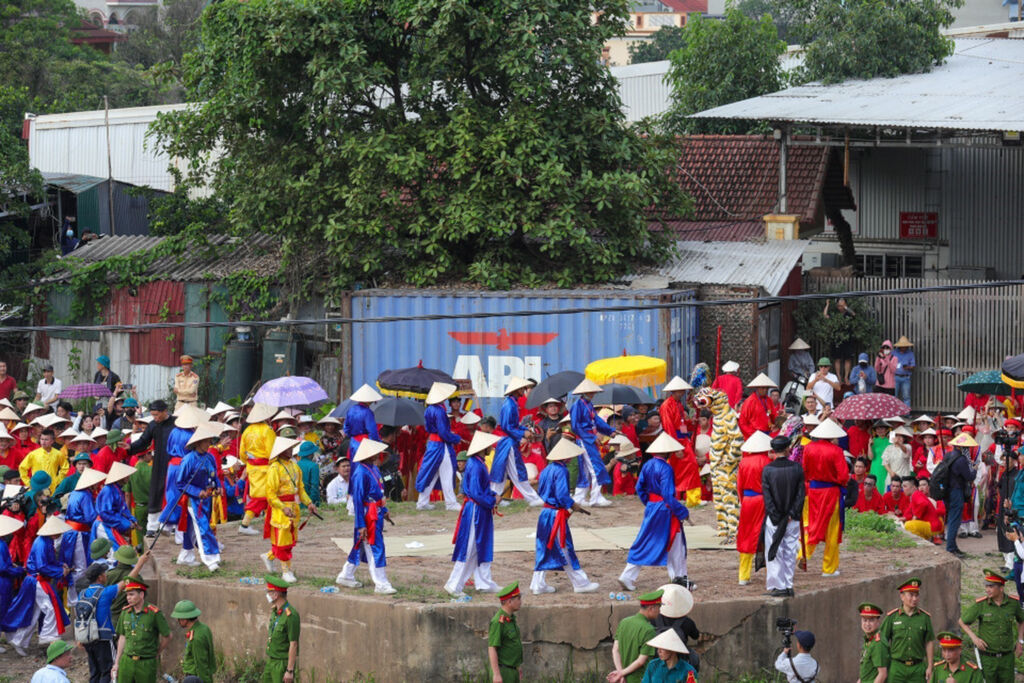 | La fête reconstitue également la bataille de "Soi Bia", au cours de laquelle les troupes du Génie Giong remportèrent une victoire éclatante contre les envahisseurs, symbolisant l’esprit de résistance et le patriotisme du peuple vietnamien. |