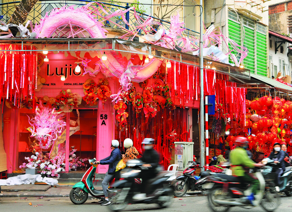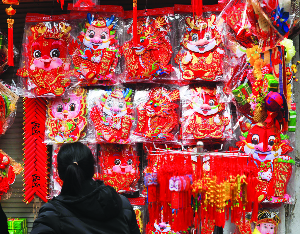 Des représentations du dragon, symbole de l’année 2024, fleurissent partout, offrant une variété de formes et de tailles pour combler aussi bien les citadins que les visiteurs en quête d’une expérience visuelle captivante et d’opportunités d’achat.