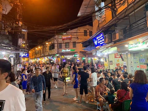 | La nuit dans la "rue des Occidentaux" de Hanoï est toujours bien éclairée et colorée. |