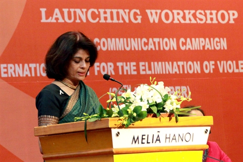 | Pratibha Mehta, coordinatrice permanente de l'ONU au Vietnam, lors de la cérémonie de lancement d'une campagne sur l'éradication des violences contre les femmes, le 18 novembre à H |