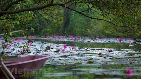 | En banlieue de Hanoï, lorsqu’ils se promènent au bord du ruisseau Yên, les touristes peuvent admirer les fleurs de nénuphars dans un cadre serein et paradisiaque. |