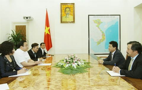 | Rencontre entre le vice-Premier ministre Hoàng Trung Hai (en blanc) et le directeur de la BAD, Tomoyuki Kimura, le 22 juin à Hanoi. |