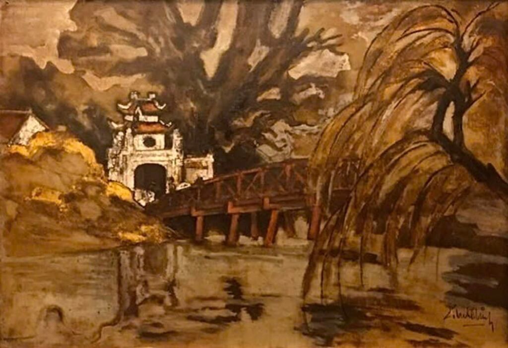 | "Le pont Thê Huc", à Hanoï (Dinh Minh, 1980). |