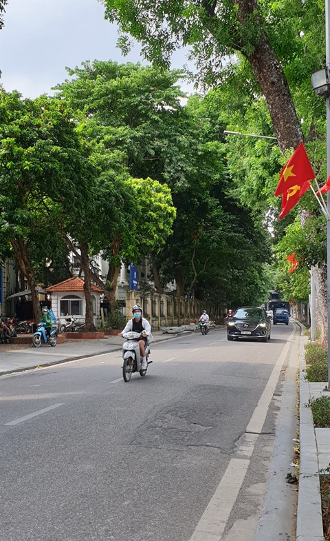 Pendant le confinement, la capitale avait des allures de ville fantôme. Quelques rares Hanoïens, des jeunes et des moins jeunes, pratiquaient leur sport favori sur les rives du lac Hoàn Kiêm. Les allées fleuries jouxtant le lac, là où d’habitude les gens se reposent sur les bancs après avoir marché, étaient vides.