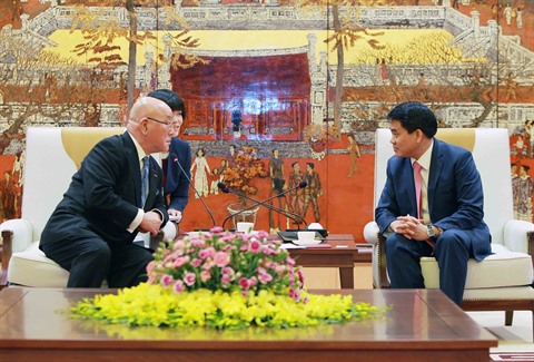 | Le président du Comité populaire de Hanoï, Nguyen Duc Chung (droite) reçoit le 23 décembre Isao Iijima, conseiller du Premier ministre japonais, Shinzo Abe. |