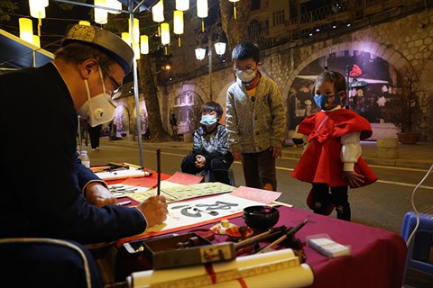 Le marché aux fleurs de Hàng Luoc et diverses activités dans l'espace mural de la rue Phùng Hung ont lieu de 8h00 à 22h00 tous les jours, jusqu'au 31 janvier.