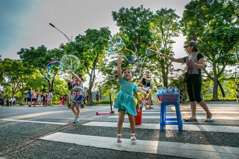 | Un coin de la rue piétonne à côté du lac Hoàn Kiêm, Hanoï. |