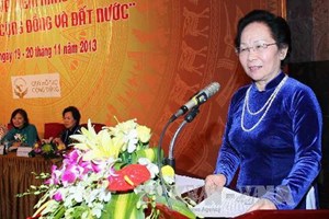 | La vice-présidente de la République, Nguyên Thi Doan, lors de l'ouverture de la conférence des femmes vietnamiennes à l'étranger, le 19 novembre à Hanoi. |
