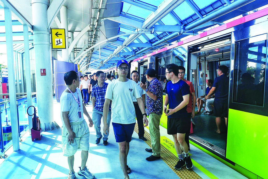| Le tronçon surélevé de Nhôn à Câu Giây, qui fait partie de la ligne de métro Nhôn - Gare de Hanoï, a débuté ses opérations commerciales le 8 août. |