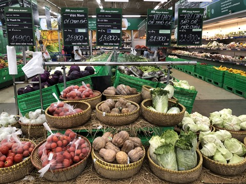 | Un stand de légumes dans le supermarché Metro implanté dans la rue Pham Van Dông à Hanoï. |