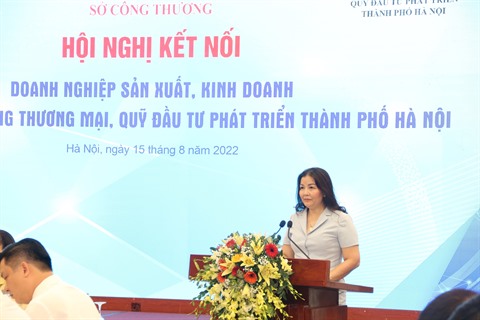 | La directrice par intérim du Service de l'industrie et du commerce de Hanoï, Trân Thi Phuong Lan, lors de l'événement, le 15 août. |
