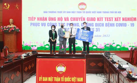 | Cérémonie de remise des kits de tests de dépistage du coronavirus, le 19 avril. |
