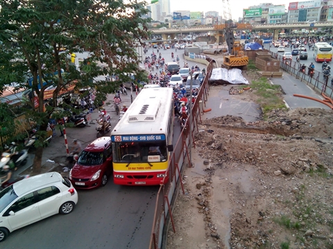La fréquence importante des bus circulant aux heures de pointe sur les axes théâtres des chantiers ferroviaires comme Nguyên Trai, Xuân Thuy, Câu Giây, est, selon les autorités, à l’origine des embouteillages.