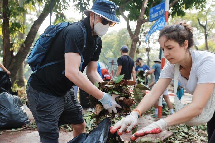 >> Des volontaires étrangers s'associent aux habitants de Hanoï pour assainir l'environnement