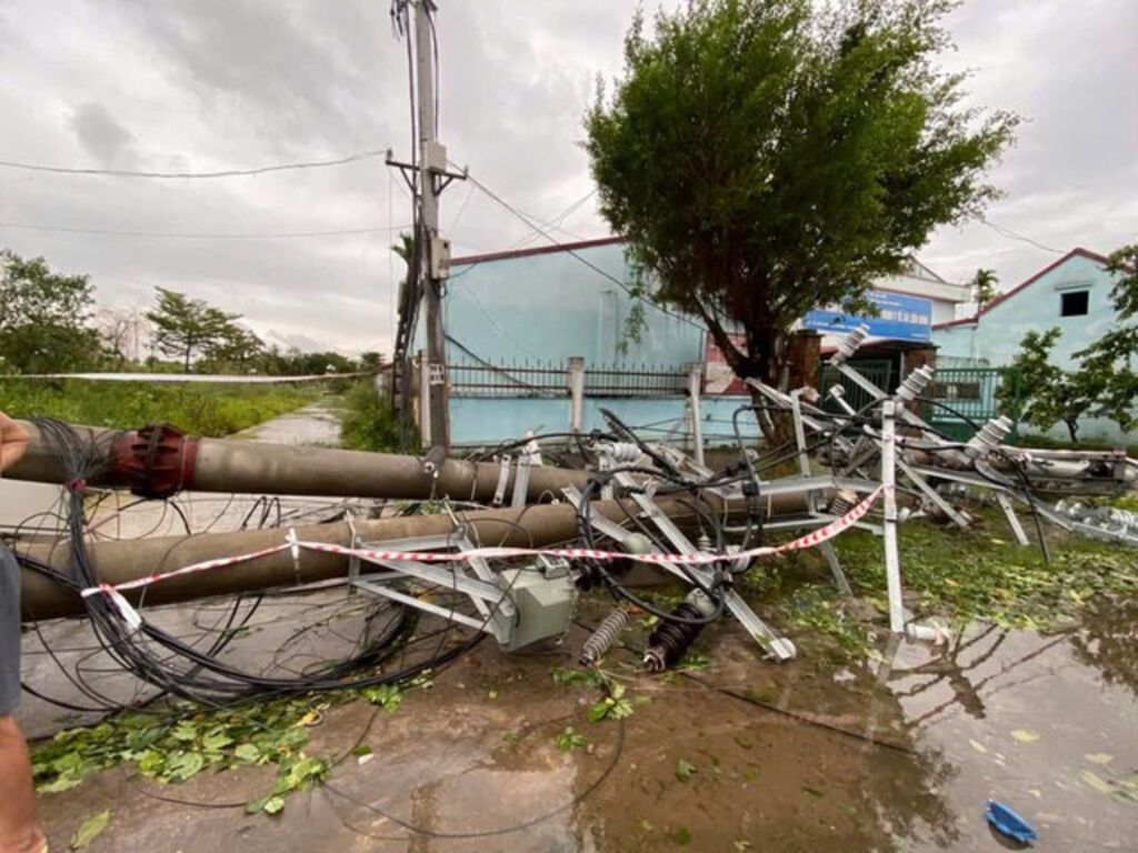 | Un poteau électrique cassé dans la commune de Liên Hông, district de Dan Phuong. |
