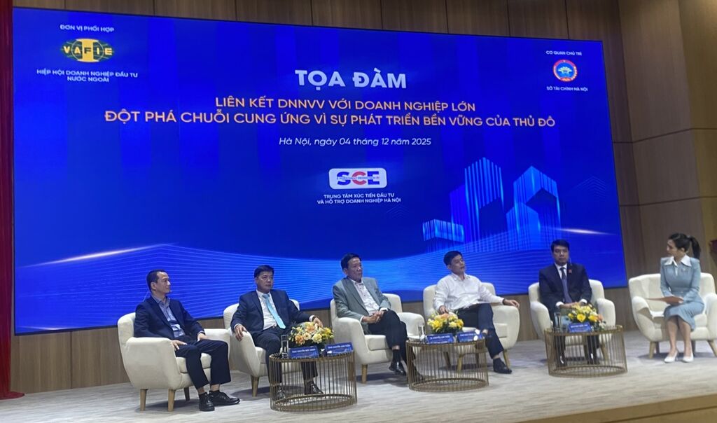 Organisée par le Service des finances de Hanoï, en collaboration avec l’Association des entreprises d’investissement étranger (VAFIE) et d’autres partenaires, la table ronde intitulée "Connexion des PME avec les grandes entreprises - Une percée dans la chaîne d’approvisionnement pour le développement durable de la capitale" s’inscrit dans la mise en œuvre des Résolutions 50, 59 et 68 du Bureau politique, qui mettent l’accent sur le développement durable, l’intégration internationale et le rôle clé de l’économie privée.