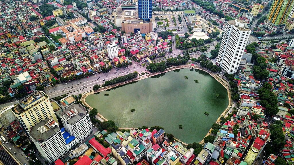 | Le lac Ngoc Khanh de l’arrondissement de Ba Dinh vu d'en haut. |